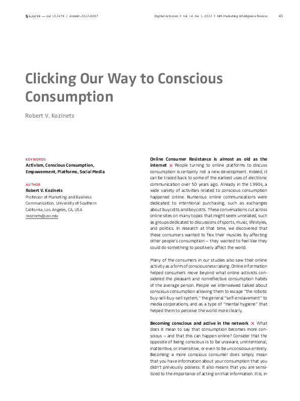 Keywords: Activism, Conscious Consumption, Empowerment, Platforms, Social Media