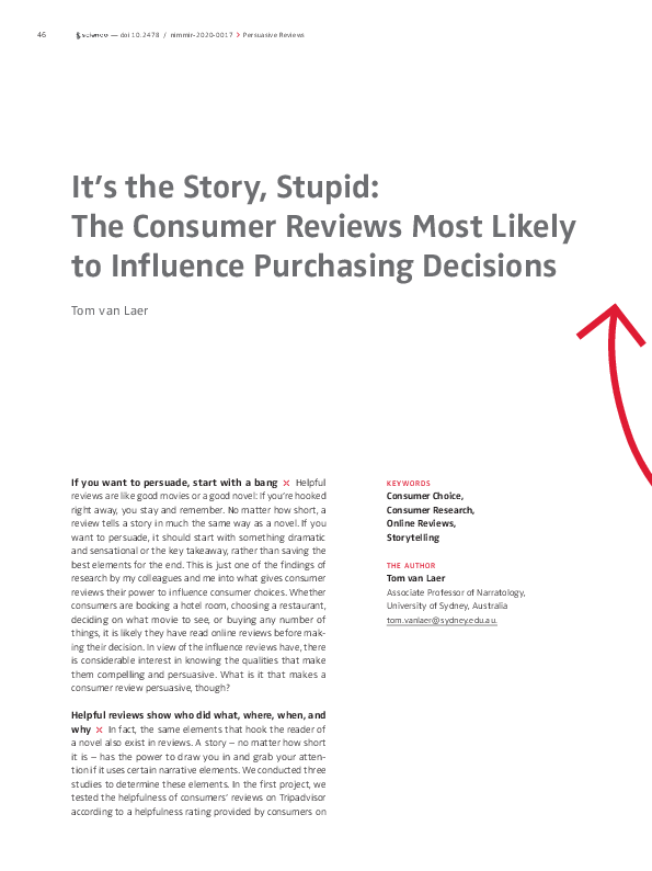 It’s the Story, Stupid: The Consumer Reviews Most Likely to Influence Purchasing Decisions