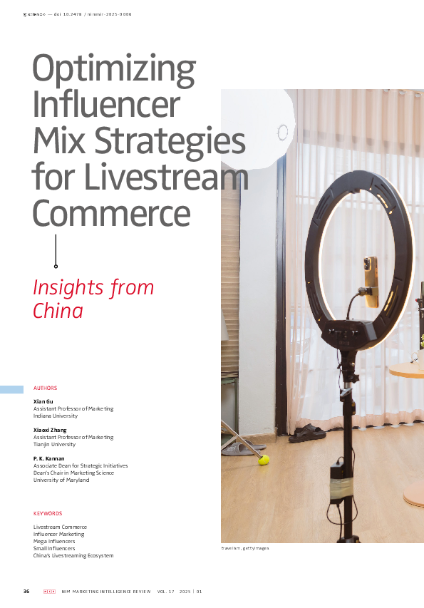 Gu, X., Zhang, X., & Kannan, P. K. (2024). Influencer mix strategies in livestream commerce: impact on product sales. Journal of Marketing, 88(4), 64–83. https://doi.org/10.1177/00222429231213581
