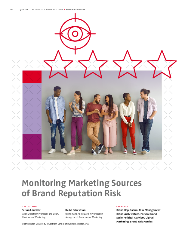 Fournier, S., & Srinivasan, S. (2023). Monitoring Marketing Sources of Brand Reputation Risk. NIM Marketing Intelligence Review, 15(1), 46-53. https://doi.org/10.2478/nimmir-2023-0007