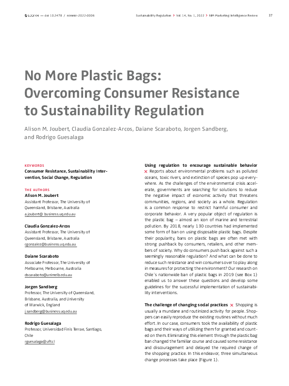 No More Plastic Bags: Overcoming Consumer Resistance to Sustainability Regulation