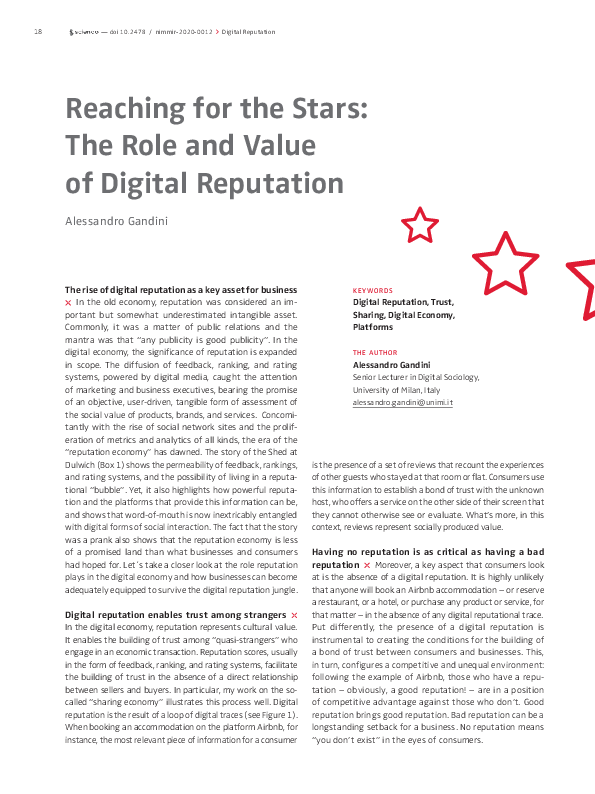 Reaching for the Stars: The Role and Value of Digital Reputation
