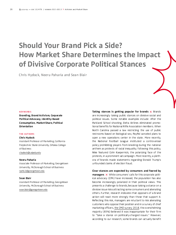 Keywords: Branding, Brand activism, Corporate Political Advocacy, Identity-based Consumption, Market Share, Political Orientation