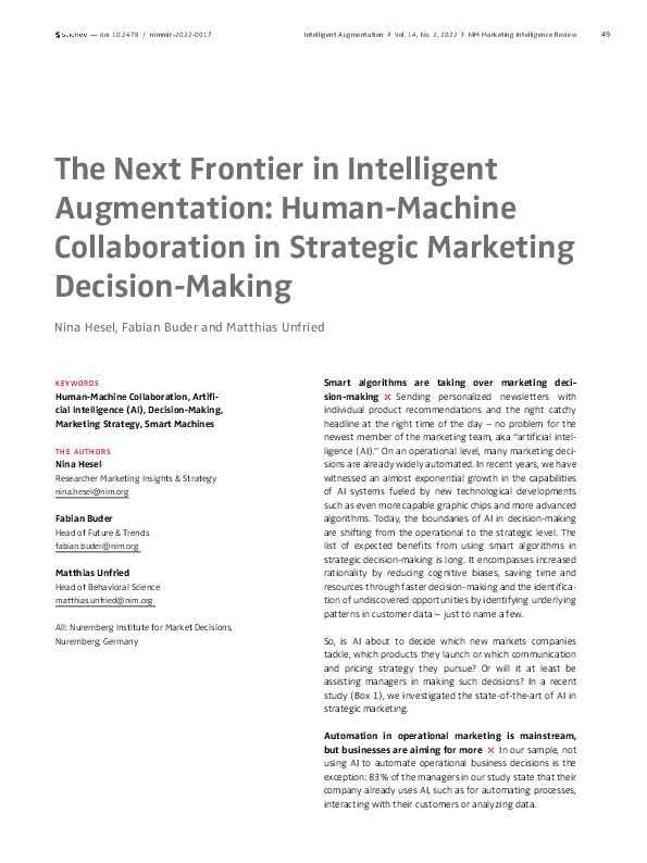Keywords: Human-Machine Collaboration, Artificial Intelligence, AI, Decision-Making, Marketing Strategy, Smart Machines