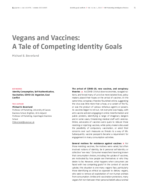 Keywords: Identity Consumption, Self-Authentication, Vaccination, COVID-19, Veganism, Goal Conflict