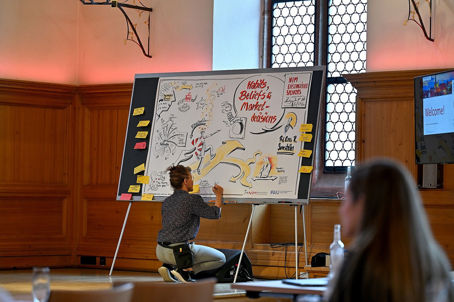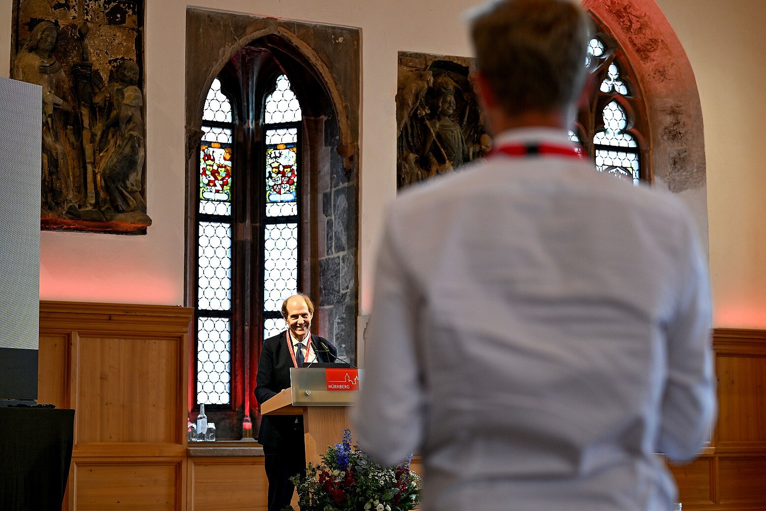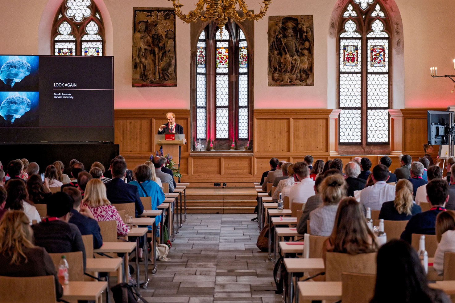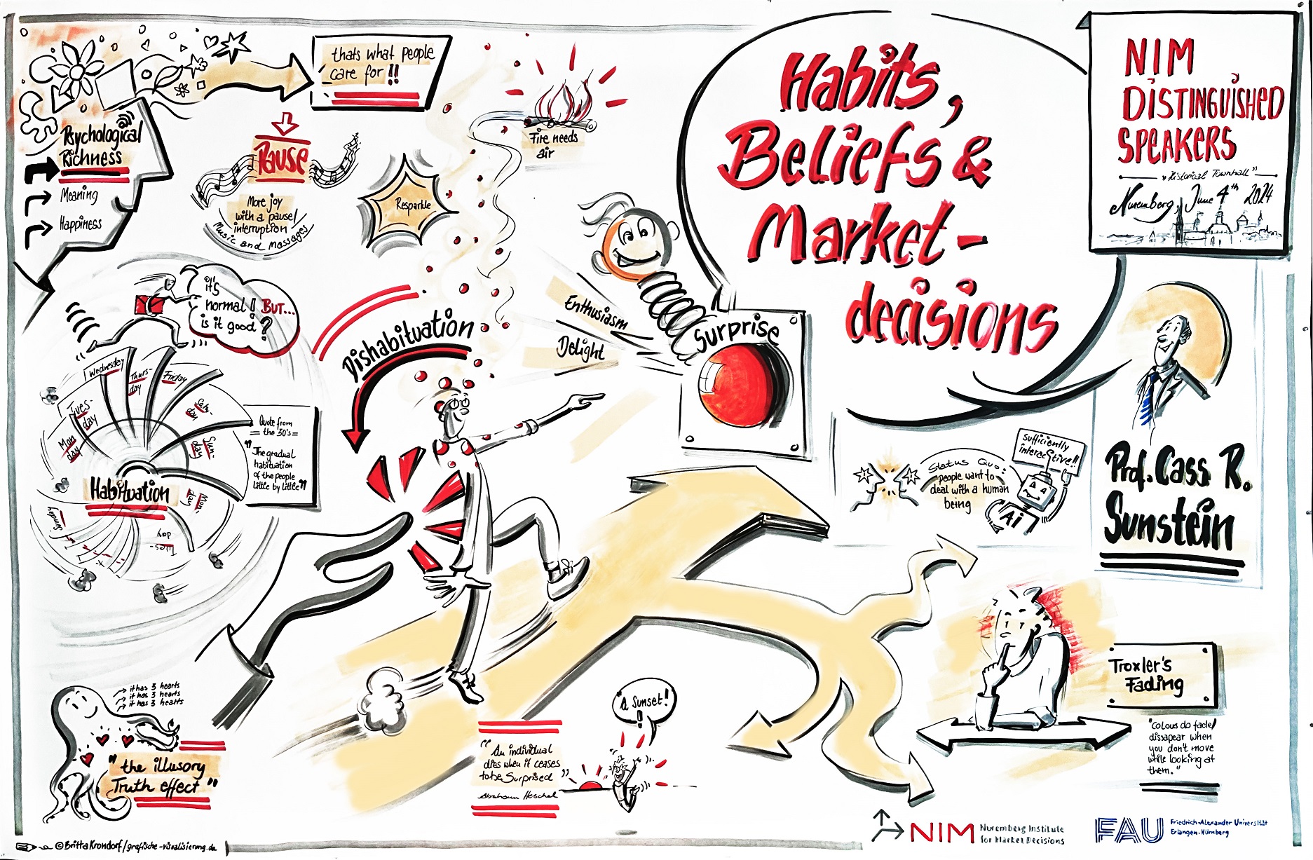 Auf Einladung des NIM hat der Gründer und Direktor des Programms für Behavioral Economics and Public Policy an der Harvard Law School einen Vortrag im Historischen Rathaussaal der Stadt Nürnberg gehalten. Vor 100 geladenen Gästen hat Prof. Sunstein aktuelle Erkenntnisse zum Thema Habits, Beliefs, and Market Decisions erörtert. Dabei ging er im Besonderen ein auf Entscheidungsgewohnheiten und -strategien und zeigte auf, warum die Art und Weise, wie wir Optionen bewerten und vergleichen, von großer Bedeutung ist. Beispiel Gewöhnung: Sie ist laut Sunstein nicht nur entscheidend für das Entstehen der Midlife Crisis – sie trübt auch jegliches Vergnügen, egal ob es um Produkte oder Erlebnisse geht. Um neue Impulse zu setzen und festgefahrene Situationen zu durchbrechen, braucht es kluge Köpfe, die Dinge grundsätzlich neu denken und Neues auch gegen Widerstände durchsetzen. Als Beispiel dafür führte Sunstein Steve Jobs auf, der mit dem iPhone eine gänzlich neue Produktkategorie schuf.