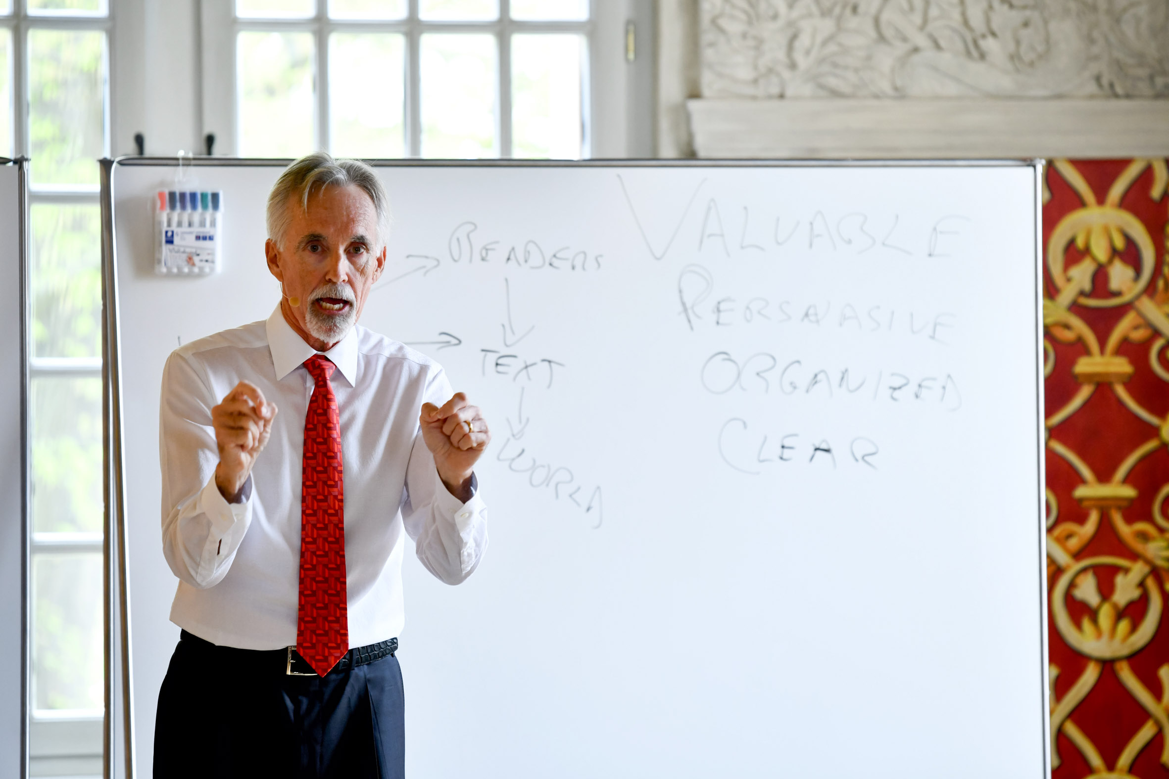 Larry McEnerney, inzwischen im Ruhestand, war 30 Jahre lang Leiter des Schreibprogramms der University of Chicago. Chicagos Programm ist spezialisiert auf Texte von Top-Fachleuten aus Forschung und Praxis. Zielgruppe sind Dozenten, Doktoranden und Diplomanden, die darüber intensiv geschult werden. Über den Campus hinaus hat Larry Forschende und Gelehrte weltweit beraten. Auch mit Universitäten, Forschungsinstituten, akademischen Gesellschaften, Fachzeitschriften, Förderorganisationen, Unternehmen und anderen Organisationen hat er zusammengearbeitet.