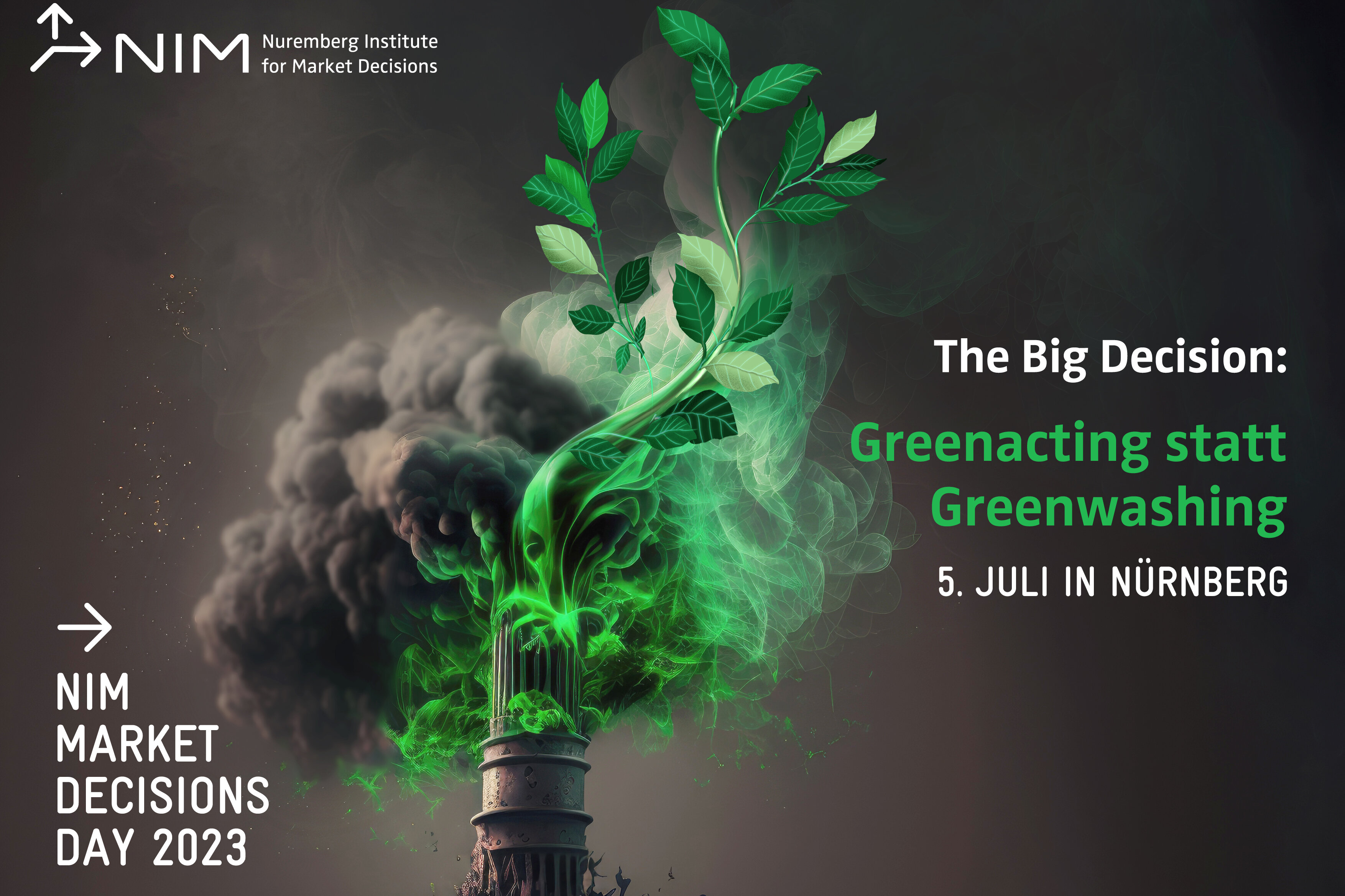 Thema des NIM Market Decisions Day am 5.7.2023: The Big Decision - Greenacting statt Greenwashing. Wo sind die Grenzen von Greenwashing und Greenacting? Wie kann Greenwashing entlarvt werden? Wie vollziehen Marken die nachhaltige Transformation?