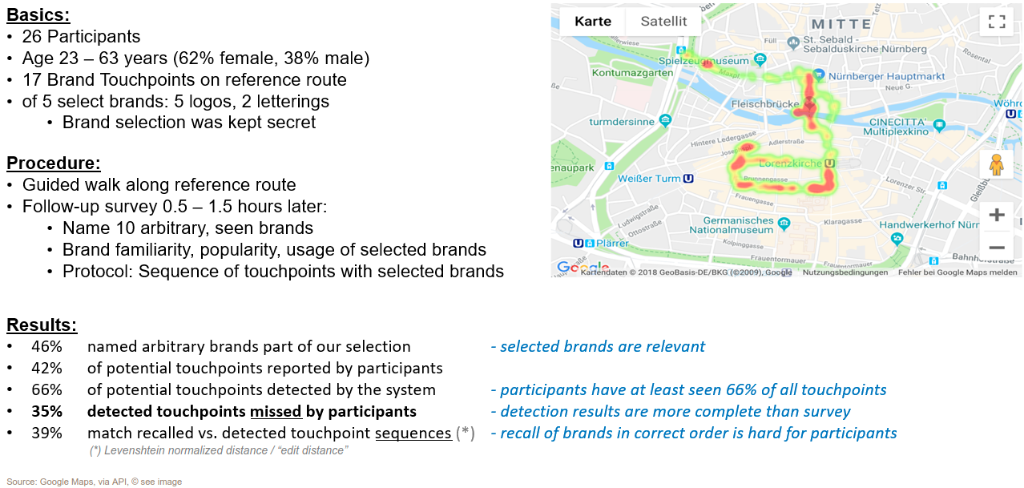 The Google Maps image above shows a heatmap of all logo detections during the study conducted with 26 participants.