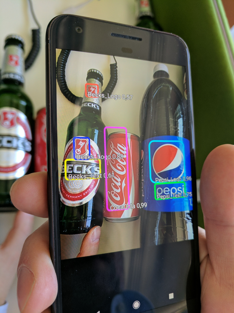 This project was a lot of fun, and we also learned a lot about dataset biases, BlueTooth and USB stacks, single-shot detectors for mobile, and that cables also have their advantages, to name a few. It was also a nice demonstration of synergy between deep learning and data science, software engineering for mobile devices, and, to a minor extent, electronics. The prototype we developed showed potential for being a useful instrument for market research. However, there is lots of room for improvement. We have not explored classifying the context of the detected logos (“billboard,” “print magazine,” etc.). With 2017 technology, we were happy to achieve logo detection on a smartphone in <1s intervals, but that pretty much maxed out the Google Pixel phone’s capabilities.