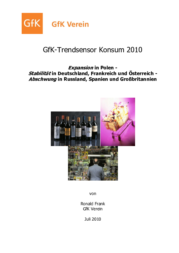 Der GfK-Trendsensor Konsum enthält Informationen zu grundlegenden Trends des privaten Konsumverhaltens in der Europäischen Union und in Russland. Der GfK-Trendsensor Konsum ist in Zusammenarbeit mit dem Institut für Wirtschafts- und Sozialpsychologie der Universität zu Köln entwickelt worden und wird seit 1995 in Deutschland im Abstand von zwei Jahren erhoben.