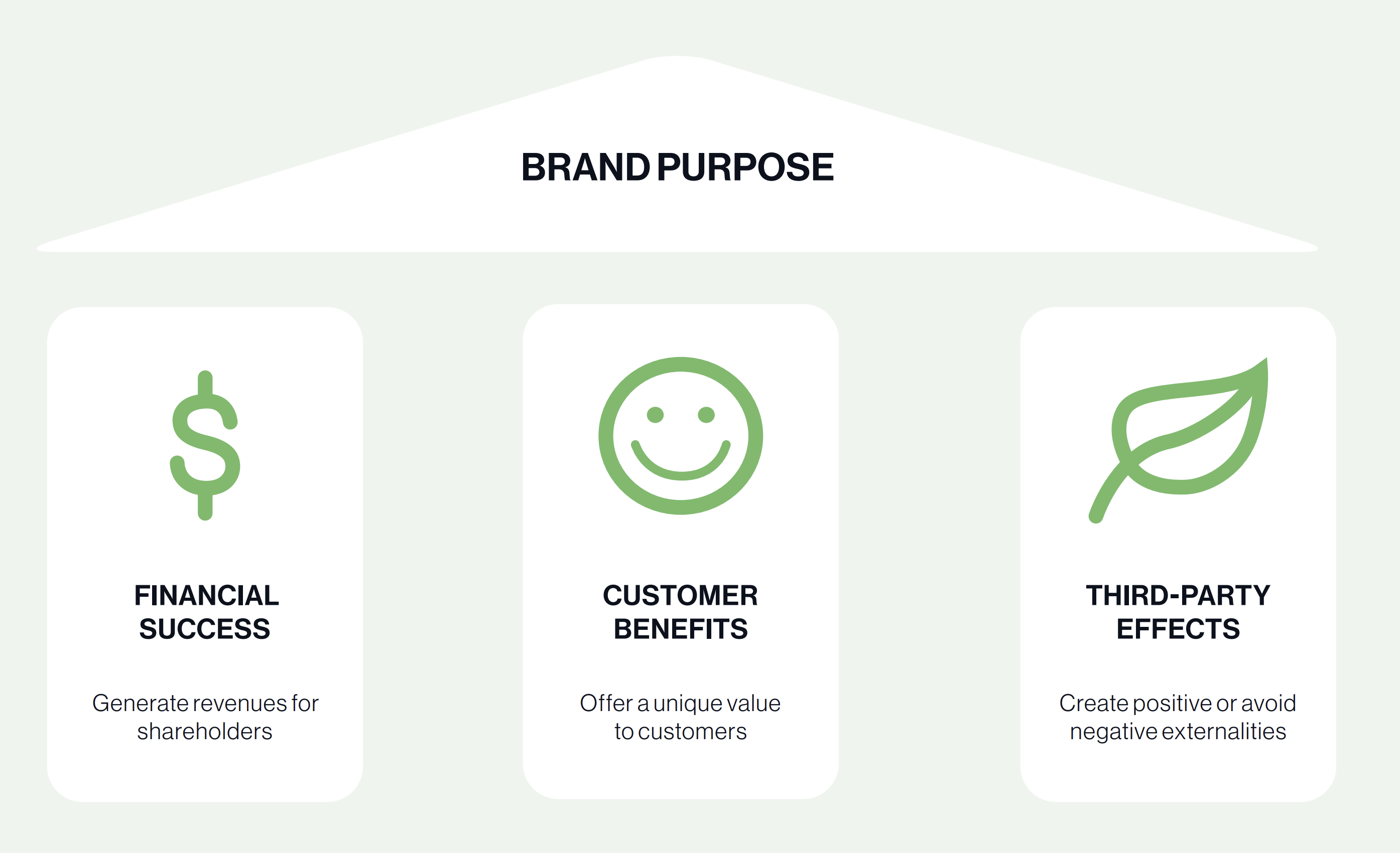 - MEASURE: Brands should take a holistic view of their purpose by assessing three dimensions: perceived emphasis on financial success, customer benefits, and third-party effects (i.e., sustainability). This can be easily achieved by surveying (potential) consumers using our validated measure.