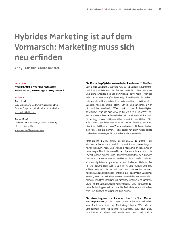 Keywords: Hybride Arbeit, Hybrides Marketing, Kollaboration, Marketingprozesse, MarTech