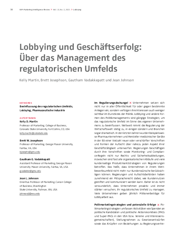 Lobbying und Geschäftserfolg: Über das Management des regulatorischen Umfelds