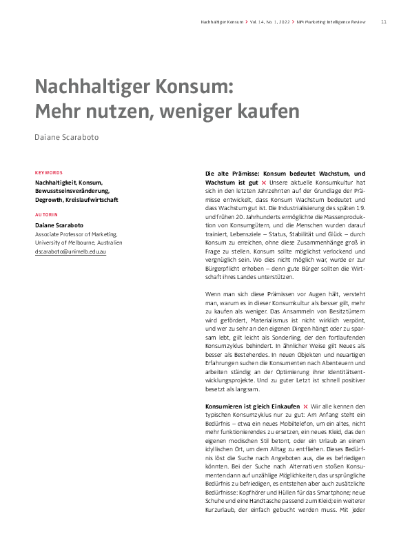 Keywords: Nachhaltigkeit, Konsum, Mindshift, Degrowth, Kreislaufwirtschaft