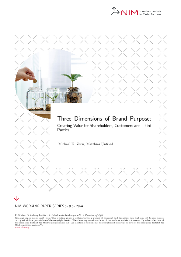 Zürn, M., & Unfried, M. (2024). Three Dimensions of Brand Purpose: Creating Value for Shareholders, Customers and Third Parties. NIM Working Paper Series, No. 9/2024
