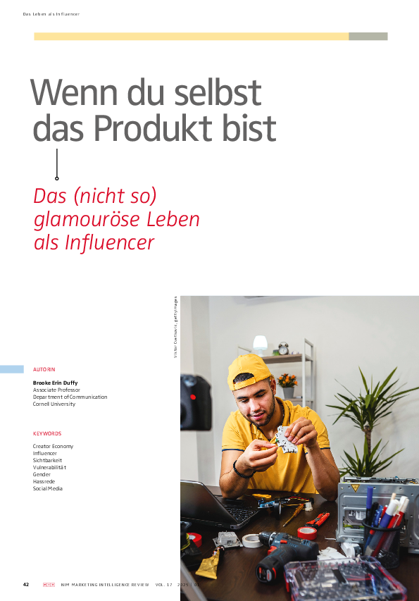 Social-Media-Influencer ist der neue Traumjob. Die Creator Economy – eine mehr als 250 Milliarden US-Dollar schwere Nische im digitalen Marktgeschehen – verändert die Alltagskultur, den Handel und die Arbeitswelt. Millionen von Menschen arbeiten hauptberuflich als Content-Creator oder Influencer und unzählige weitere träumen davon, es ihnen gleichzutun. Im Zuge der weltweiten Pandemie haben Social-Media-Karrieren weiter an Attraktivität gewonnen und Erwerbstätige wünschen sich mehr Autonomie, Flexibilität und Selbstverwirklichung. Eine von der Influencer-Marketing-Agentur IZEA veröffentlichte Umfrage aus dem Jahr 2024 ergab, dass nicht nur Teenager, sondern auch bis zu 60-jährige Erwachsene gerne als Influencerinnen und Influencer tätig wären.