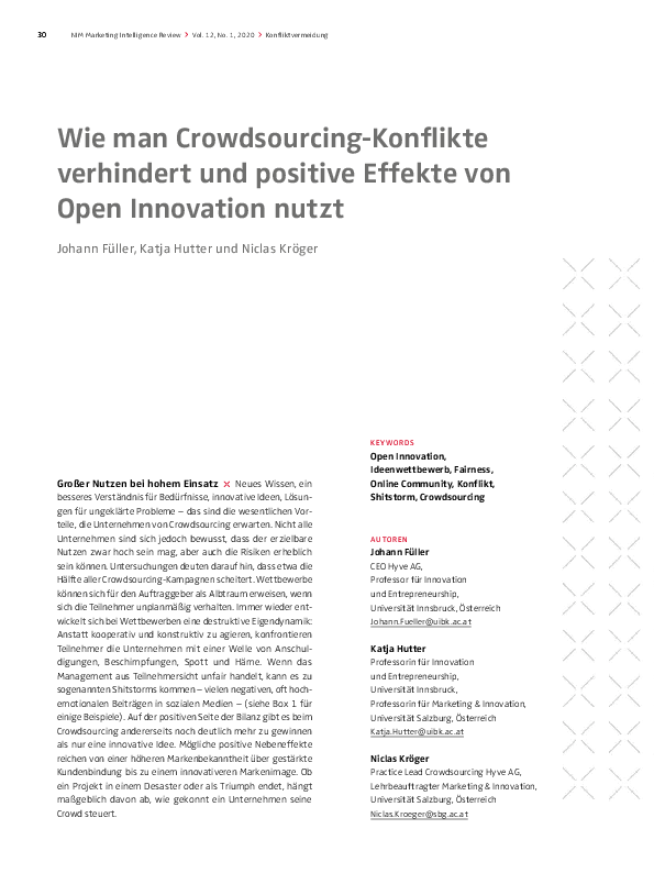 - Faullant, R., Füller, J., Hutter, K. (2017). Fair play: Perceived fairness in crowdsourcing competitions and the customer relationship-related consequences. Management Decision, 55(9), 1924–1941.